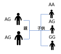 ヒトの遺伝子は父親と母親のそれぞれを受け継いでいるので、2本存在しています(対立遺伝子といいます)。